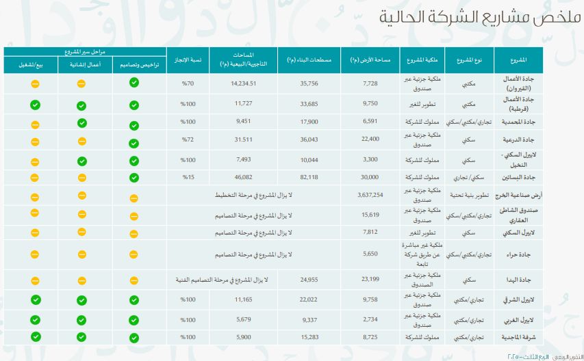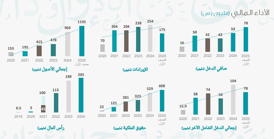 وبحسب التقرير، بلغ إجمالي مسطحات البناء لمشاريع التطوير العقاري التي نفذتها الشركة لنهاية النصف الأول لعام 2025م ما يزيد عن 390 ألف متر مربع، وسجلت نمواً مركبا لإجمالي الأصول في آخر 3 سنوات بنسبة 138%، وحققت هامش صافي الربح للنصف الأول من عام 2025م بنسبة 45%.