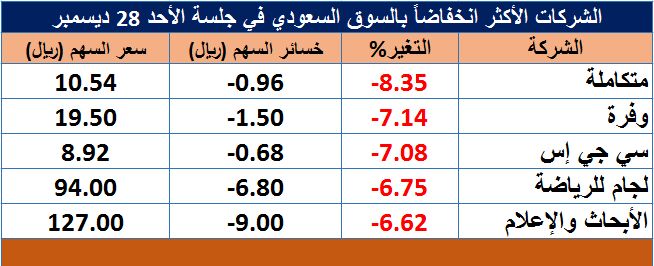 234 شركة مدرجة في "تاسي" تتراجع بجلسة الأحد.. و"طيران ناس" يحلق بنسبة 5%, اليوم الأحد 28 ديسمبر 2025 03:24 مساءً
