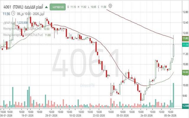 سهم "أنعام القابضة" يتحرك ضمن اتجاه هابط مع سيطرة القوة البيعية, اليوم الاثنين 6 أبريل 2026 12:25 مساءً