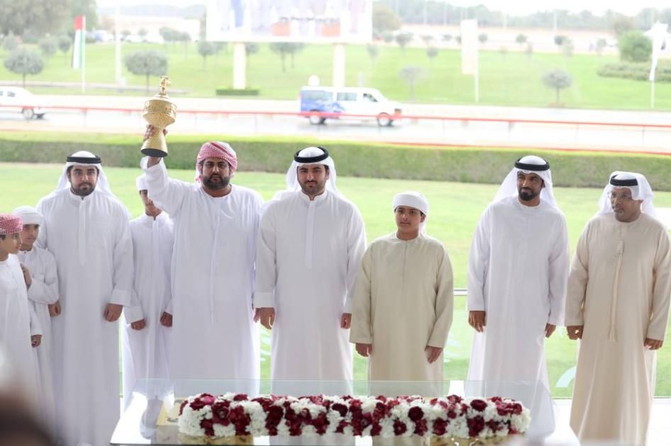 وتوج الشيخ محمد بن مكتوم بن راشد آل مكتوم، والشيخ حمدان بن مكتوم بن راشد آل مكتوم، الفائزين برموز سن الثنايا لهجن أصحاب السمو الشيوخ، وذلك على منصة ميدان المرموم، بحضور علي سعيد بن سرود، المدير التنفيذي لنادي دبي لسباقات الهجن، وعبدالله أحمد فرج، مدير إدارة الإعلام والتسويق والفعاليات وعلاقات الشركاء بالنادي.