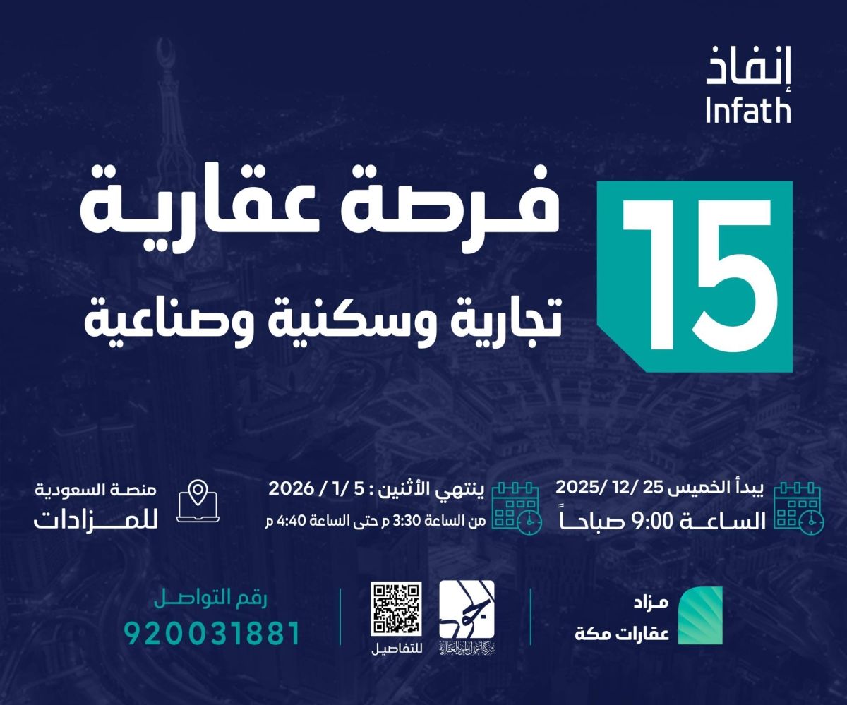أرض خام وعقارات استثمارية وتجارية وسكنية وصناعية في مكة المكرمة, اليوم الثلاثاء 23 ديسمبر 2025 10:34 صباحاً