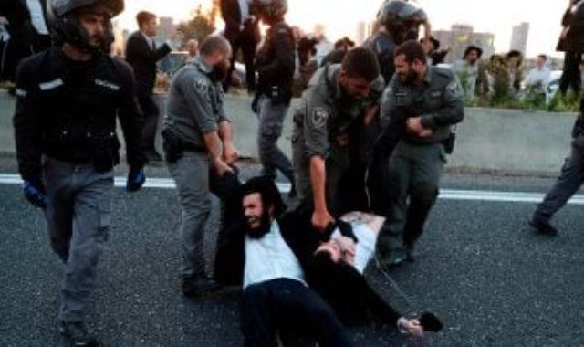 احتج نحو 20 متظاهرًا من اليهود الأرثوذكس المتشددين "الحريديم" أمام مكتب التجنيد التابع لجيش الاحتلال الإسرائيلي في القدس، اليوم /الأحد/ احتجاجًا على التجنيد الإجباري.