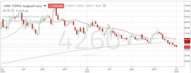 بدأ سهم بدجت السعودية تداولاته في 2025 بأحجام تداول ضعيفة نسبياً مع حركة عرضية في شهر يناير، وبداية من شهر فبراير أظهر السعر قمماً متناقصة وتعرض لضغوط بيعية حادة استمرت حتى شهر يونيو. ثم نجح السعر في معاودة الصعود من شهر يونيو حتى شهر أكتوبر، ولكن لم تكن القوة الشرائية قادرة على إكمال الاتجاه وتراجع بداية من شهر نوفمبر حتى شهر ديسمبر مخترقاً مستوى دعم هام؛ مما يشير إلى قوة الاتجاه الهابط الحالي.