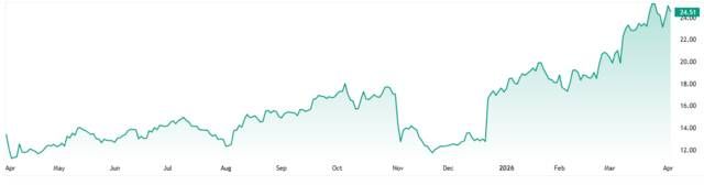 ومع بداية شهر فبراير، استعاد السهم زخمه الصاعد، حيث نجح في اختراق القمة التاريخية مصحوبًا بارتفاع ملحوظ في أحجام التداول، ليسجل مستويات تاريخية جديدة قرب 26.10.