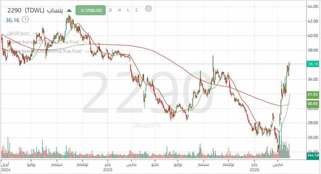 سهم "ينساب" يختبر المقاومة الرئيسية مع تصاعد في أحجام التداول, اليوم الأحد 5 أبريل 2026 11:27 صباحاً