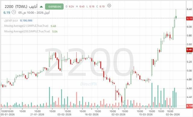 سهم "أنابيب" يختبر مستوى نفسياً هاماً مدعوماً بإشارات فنية إيجابية, اليوم الأحد 5 أبريل 2026 11:27 صباحاً