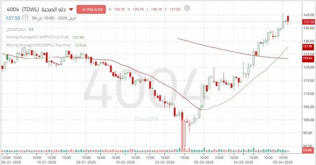 سهم "دله الصحية": تحسن فني مع اختبار حاجز نفسي هام, اليوم الاثنين 6 أبريل 2026 01:54 مساءً