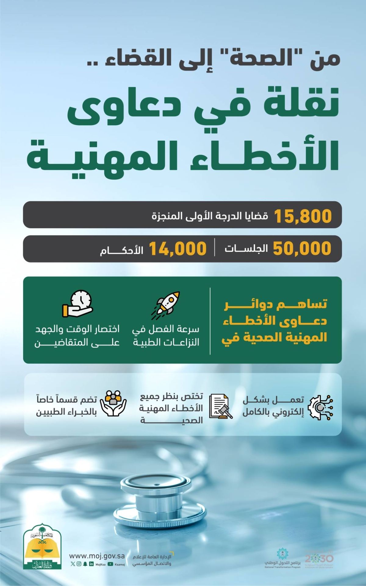 التحول بدأ حين انتقلت اختصاصات الهيئات الصحية الشرعية من وزارة الصحة إلى القضاء العام؛ فكان لا بد من بناء منظومة عدلية جديدة تتناسب مع حساسية هذا النوع من القضايا، فتم تدريب القضاة، وتأهيلهم، وتهيئة بيئة رقمية متكاملة لنظر هذا النوع من النزاعات.